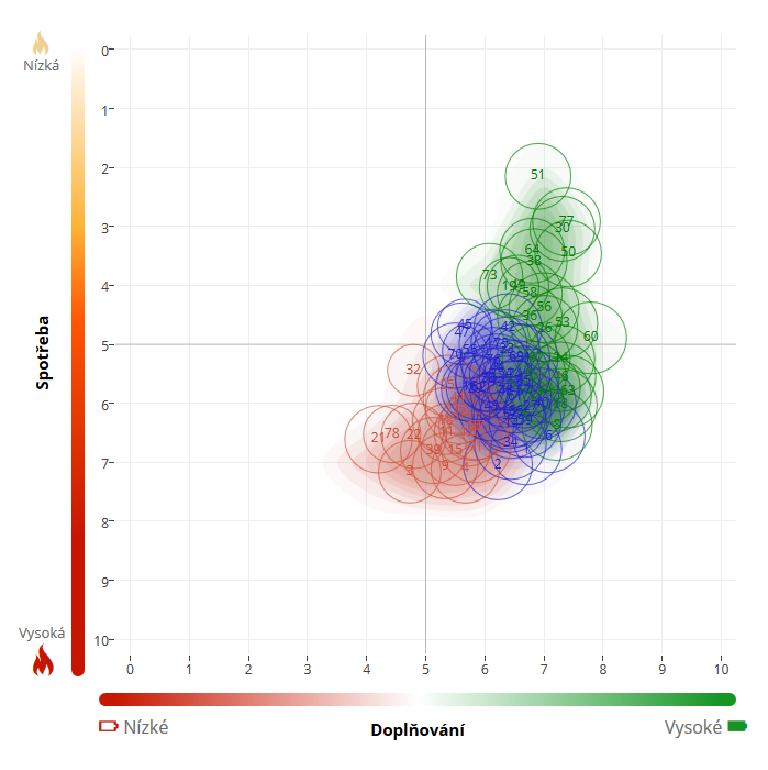 - Celkový výkon - celková aktivita centrálního nervového systému (velikost bodu)